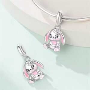 Zawieszka charms do pandory Srebro próby 925 Różowy Króliczek