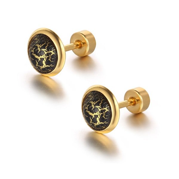 Kolczyki „Złote wkrętki z efektem czarnego marmuru” wykonane są z trwałej i hipoalergicznej stali chirurgicznej. Ich oryginalne wykończenie łączy głęboką czerń z subtelnym złotym wzorem, tworząc nowoczesny i odważny akcent. Idealne zarówno dla kobiet, jak i mężczyzn szukających biżuterii o niebanalnym charakterze.