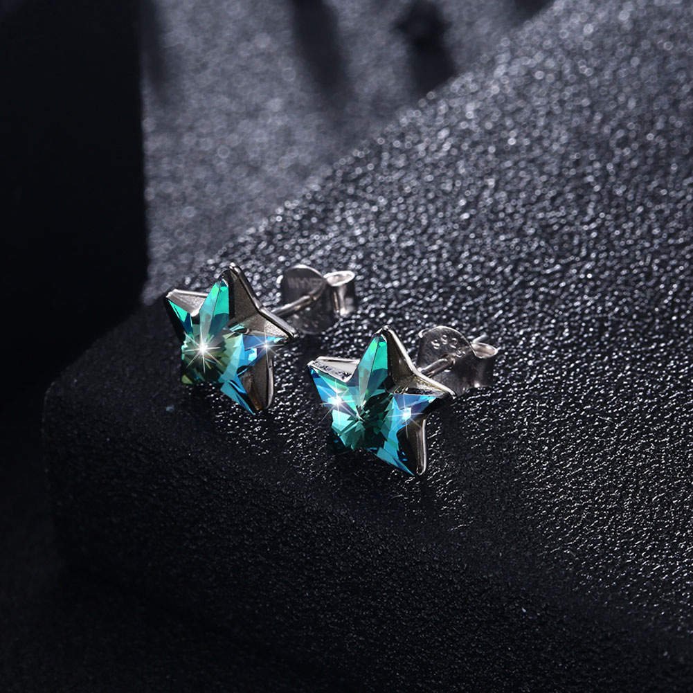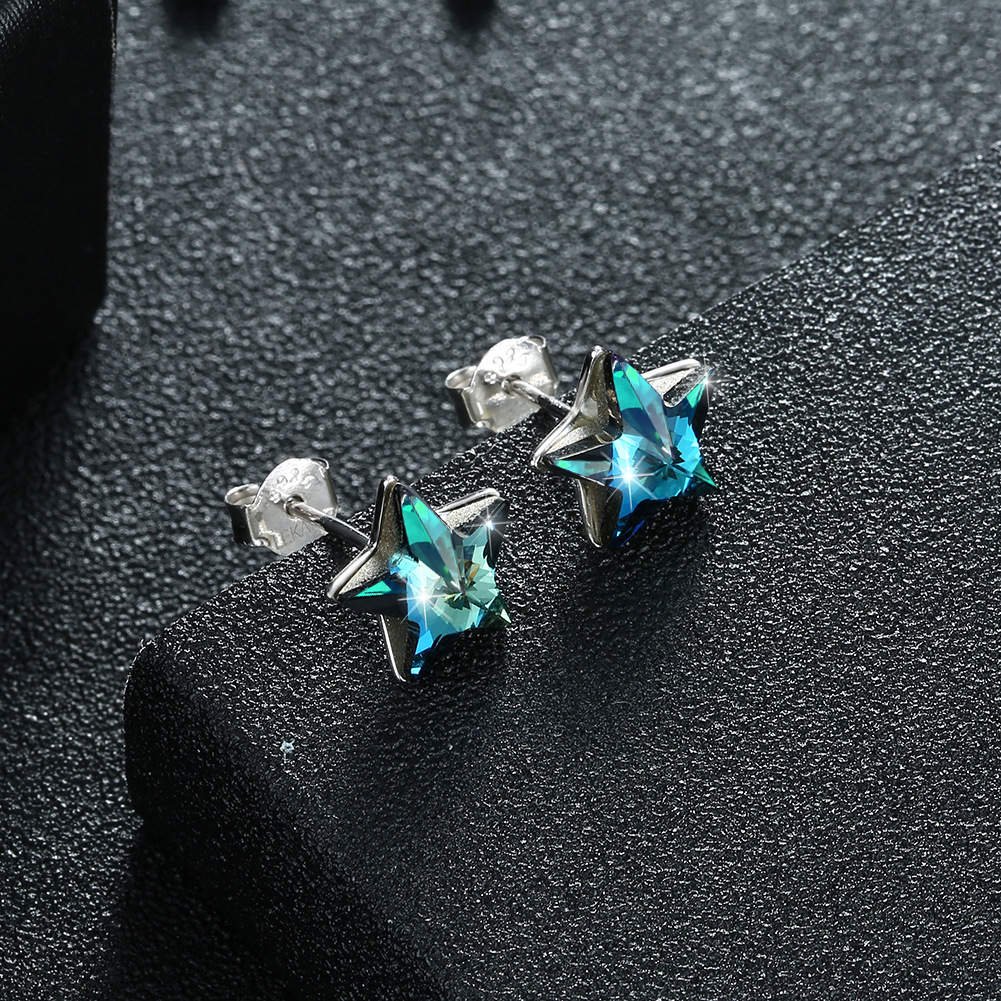 Kolczyki „Błękitne gwiazdy ze srebra 925” to efektowna biżuteria, która przyciąga uwagę intensywnym blaskiem. Wykonane z wysokiej jakości srebra próby 925, ozdobione są niebieskimi kryształami w kształcie gwiazd, które pięknie odbijają światło. Idealne na wyjątkowe okazje i jako wyrazisty akcent w codziennej stylizacji.