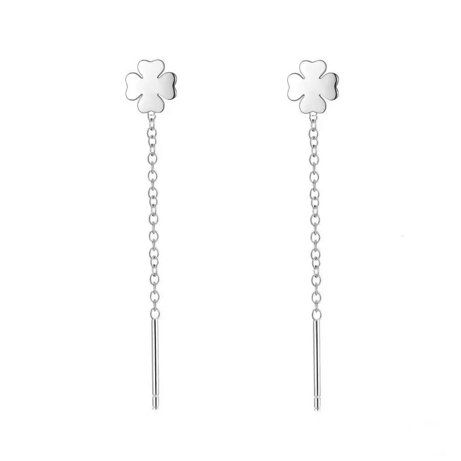 Kolczyki „Przeciągane koniczynki ze srebra 925” to lekka i stylowa propozycja dla miłośniczek delikatnej biżuterii. Wykonane z wysokiej jakości srebra próby 925, ozdobione są pełnym motywem czterolistnej koniczyny symbolizującej szczęście. Smukły łańcuszek i prosty pręcik nadają całości subtelnego uroku, idealnego na każdą okazję.