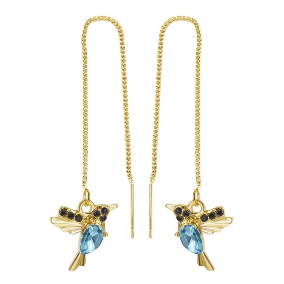 Kolczyki złote wiszące koliber