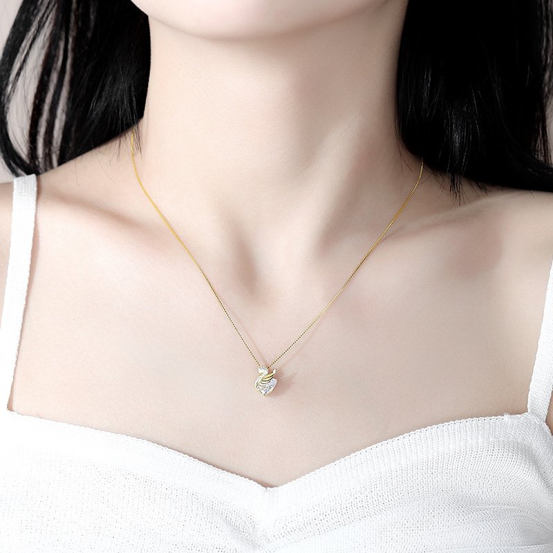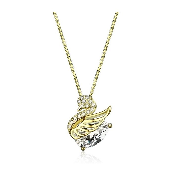 Naszyjnik „Łabędź z kryształem” przedstawia wisiorek w kształcie łabędzia zdobiony przejrzystym kamieniem i drobnymi cyrkoniami.