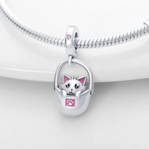 Rabat!Zawieszka charms do pandory Srebro próby 925 Kotek w koszyku