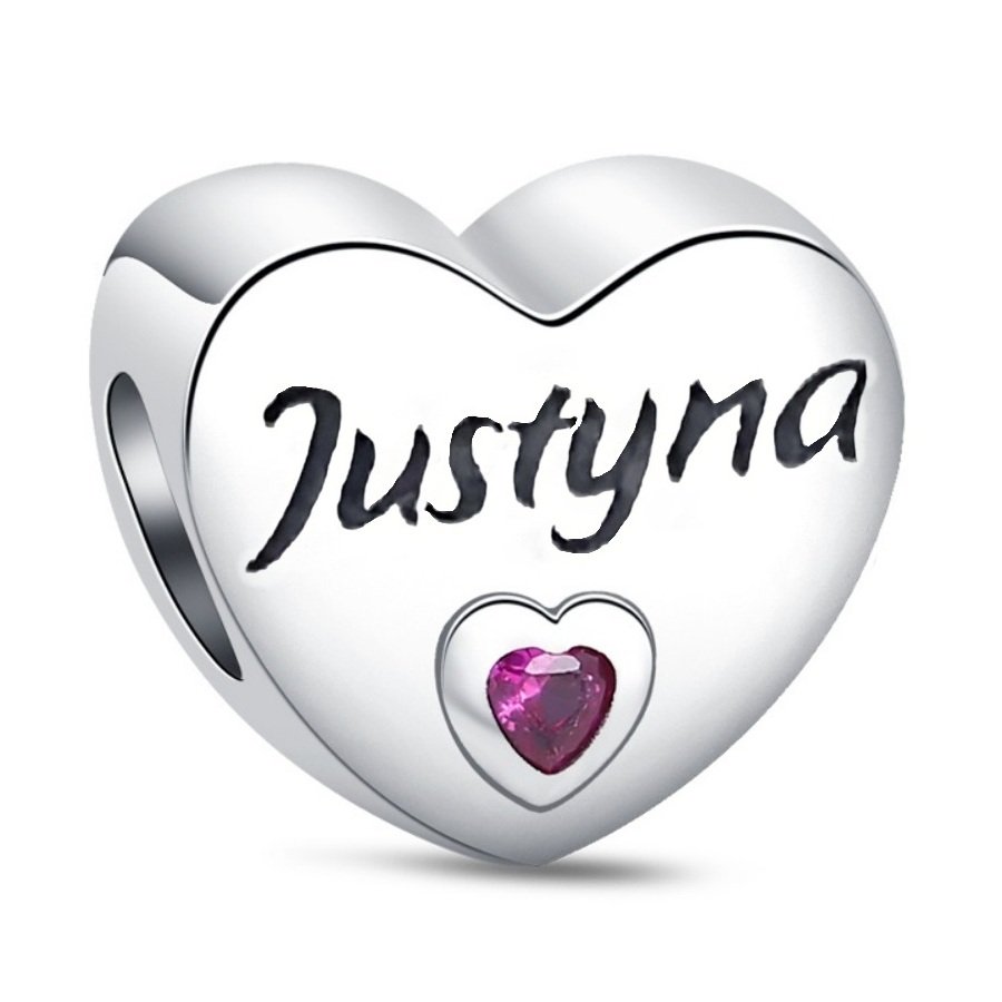 Zawieszka charms typu Pandora Serce z imieniem Justyna to wyjątkowy dodatek personalizowany, który łączy prostotę z emocjonalnym przekazem. Wykonana ze srebra próby 925, przybiera kształt wypukłego serduszka z grawerowanym napisem „Justyna” oraz różowym kamieniem w kształcie serca umieszczonym w dolnej części. Błyszczące wykończenie i subtelne detale tworzą kompozycję pełną ciepła i symbolicznej wartości. Motyw serca od zawsze utożsamiany jest z miłością, wdzięcznością i przywiązaniem – w tym przypadku skierowanym do konkretnej osoby. Zawieszka może być wyrazem bliskości, pamiątką lub prezentem dla kogoś wyjątkowego. Sprawdzi się jako osobisty akcent w każdej modułowej bransoletce.