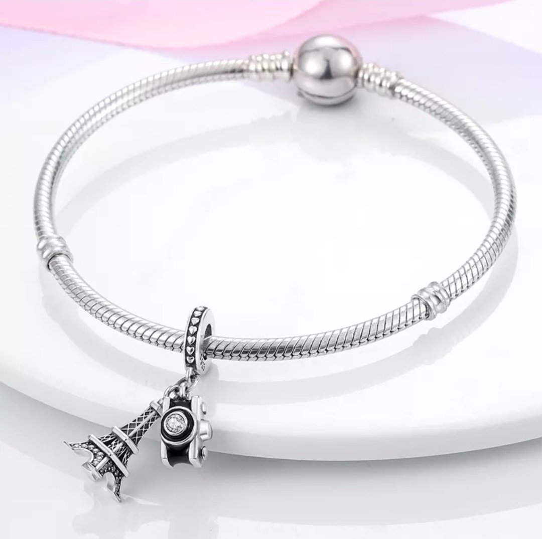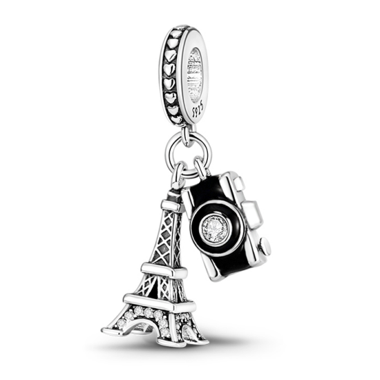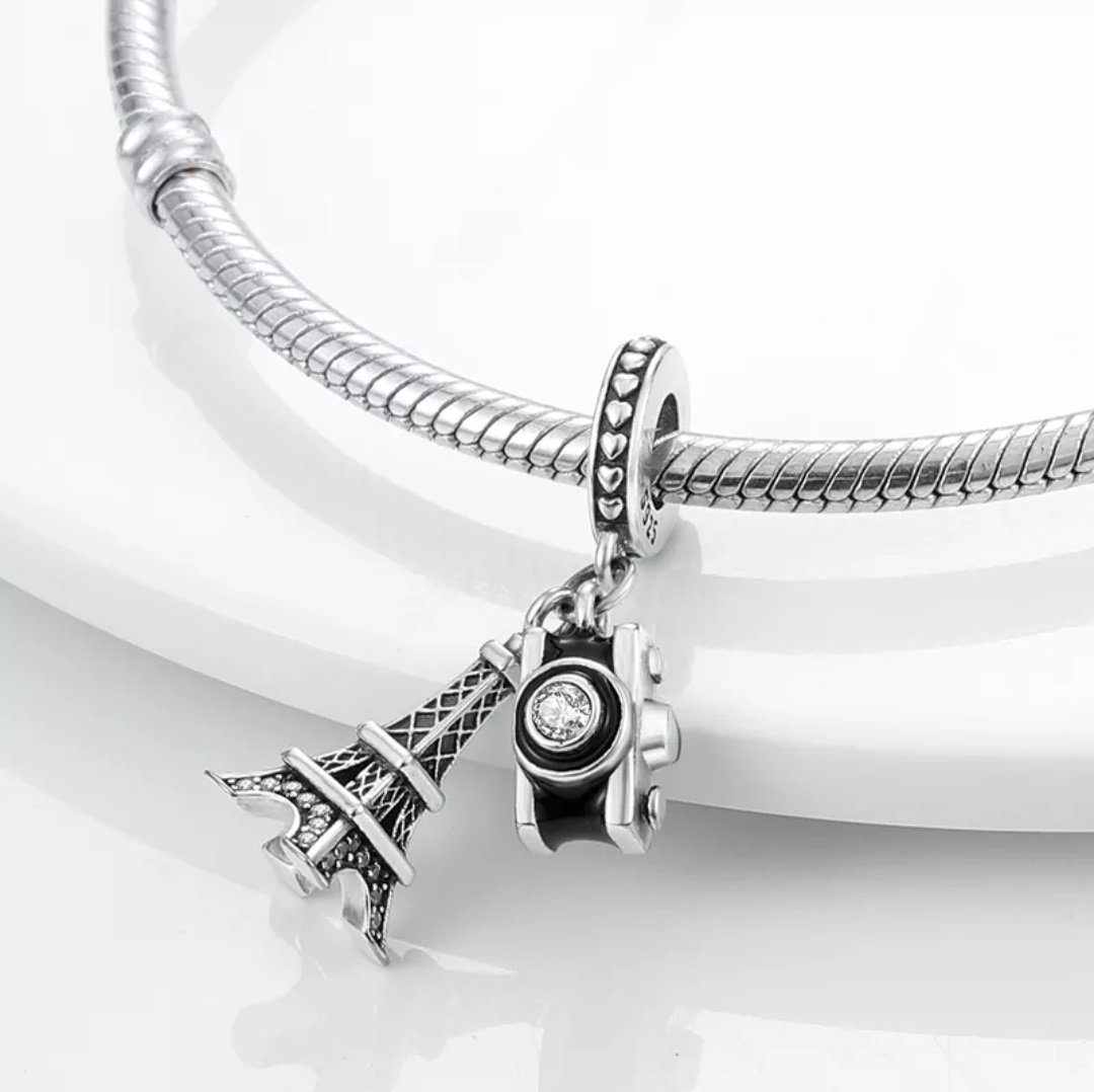 Zawieszka charms typu Pandora Wieża Eiffla i Aparat Fotograficzny to idealny dodatek dla miłośników podróży i fotografii. Wykonana ze srebra próby 925, zawieszka wyróżnia się wysoką jakością i trwałością. Detale takie jak miniaturowa Wieża Eiffla ozdobiona cyrkoniami oraz aparat fotograficzny z błyszczącym kryształem nadają jej wyjątkowego uroku. Idealnie komponuje się z innymi elementami biżuterii modułowej, tworząc unikalne i stylowe kompozycje. Ta zawieszka to doskonały wybór na prezent dla osób kochających Paryż i chętnie uwieczniających piękne chwile. Dzięki swojemu wyjątkowemu designowi, zawieszka ta dodaje bransoletce osobistego i wyjątkowego charakteru.